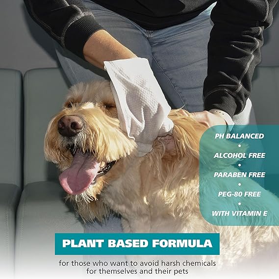 Stay clean and protected with these versatile glove shaped dog wipes for paws and butt. Designed for full hand coverage, their thick and durable material helps keep dirt, grime, and mess away. The one-size-fits-all design ensures a comfortable and secure fit, making it an essential need for any pet owner who wants a clean pup without the icky mess. Perfect for cleaning your dog's paws, face, ears, and rear, this mitt allows you to keep your hands mess-free while keeping your pet fresh and clean. Whether at home or on the go, it’s a convenient solution for quick cleanups after walks, outdoor adventures, or daily grooming. Our coconut lime verbena scented dog wipes have a fresh smell and are pH balanced, alcohol-free, paraben-free, and PEG-80-free, making them safe and gentle for dogs and puppies. The pet friendly formula ensures effective cleaning while being kind to your pet’s skin and coat. Each value pack includes 2 packs of 12. This helps maintain the gloves moisture for a longer period of time and for multi-location use. Keep one at home with your pet supplies and one in the car for added convenience, ensuring you're always prepared for messes. A must-have for pet owners, this cleaning mitt is perfect for those searching for dog wipes, pet cleaning mitts, pet supplies, cleaning wipes, and puppy grooming essentials.