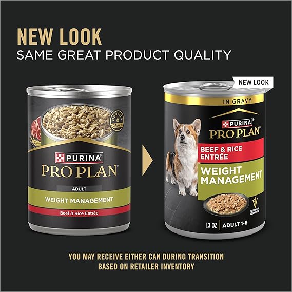 Purina Pro Plan Weight Management Wet Dog Food Beef and Rice Entree in Gravy - (Pack of 12) 13 oz. Cans