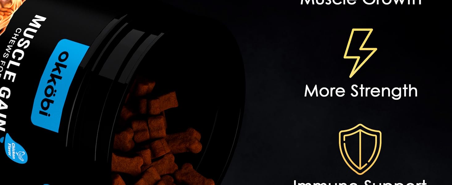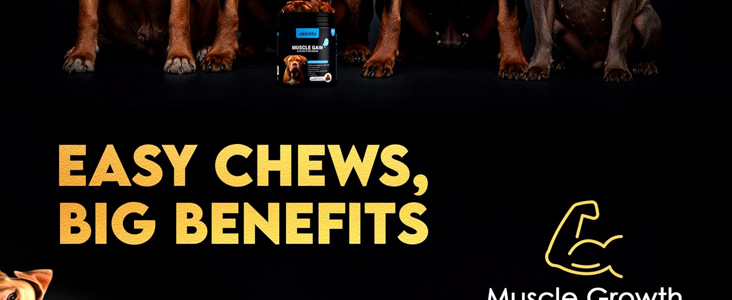 - 11-IN-1 CHEWS TO BOOST MUSCLE & STRENGTH: Packed with premium protein and essential amino acids like L-Arginine, L-Glutamine, L-Leucine, L-Isoleucine, and L-Valine to support healthy muscle growth and repair for a stronger, more athletic dog.