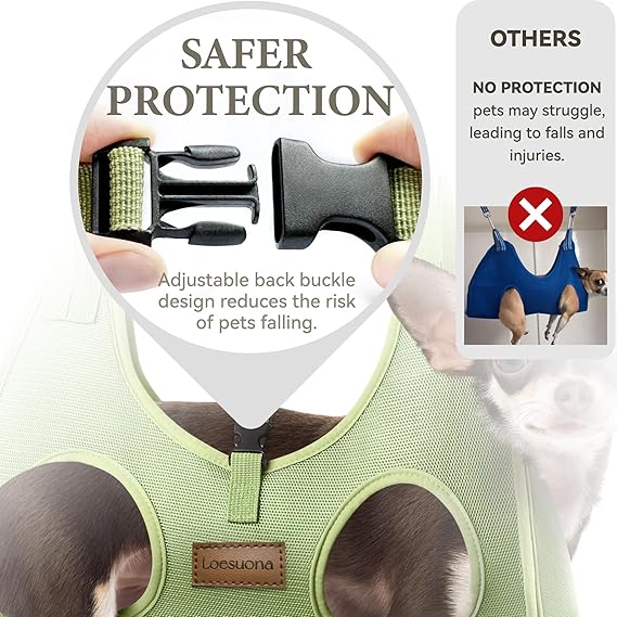 - 【Back Safety Buckle Design】Our dog nail trimming hammock kit features a safety buckle not found on other dog sling for nail trimming. This adjustable buckle ensures a perfect fit, reducing the risk of injury from escapes.