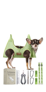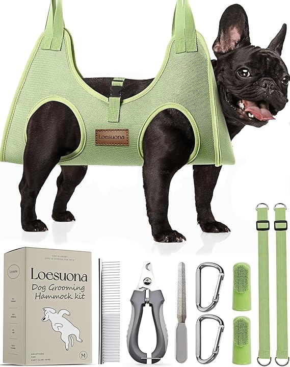 - 【 Professional Pet Grooming Bag 】includes dog hammock x1, carabiners x2, dog nail clippers x1, nail file x1, adjustable straps x2, finger toothbrush x2,Steel Comb x1 These items enhance the dog nail hammock, making nail trimming stress-free and easy.