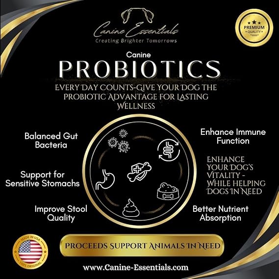 Support your dog’s gut health and immune function with Canine Essentials Probiotics for Dogs. These duck-flavoured chews are made with human-grade ingredients and designed for daily use to improve digestion, ease discomfort, and strengthen immune defences. Each 8 oz jar contains approximately 90 supplements, suitable for dogs of all sizes. Plus, every purchase helps support animals in need—because every tail deserves to wag with health and happiness.