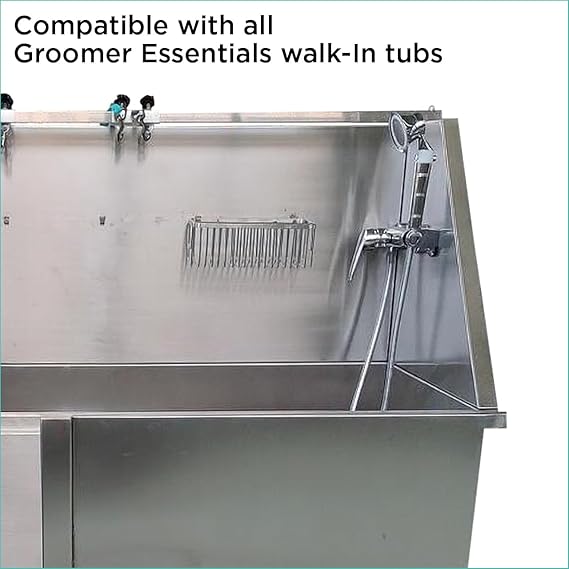 - Versatile Outdoor Shower: This shower faucet is perfect for outdoor shower setups, making it a versatile addition to any dog grooming station. Compatible with all Groomer Essentials Walk-In Tubs, it ensures seamless integration for professional groomers.