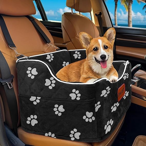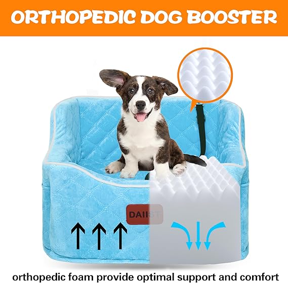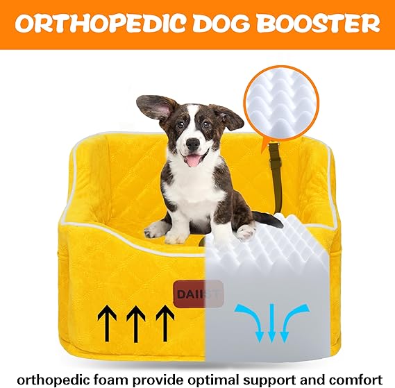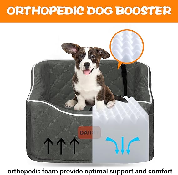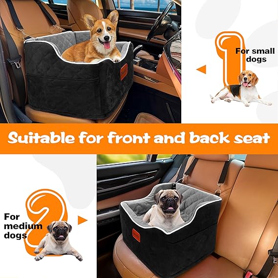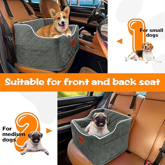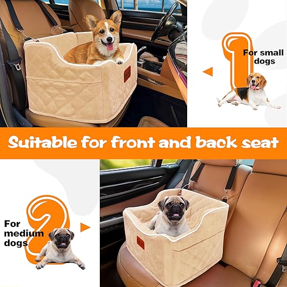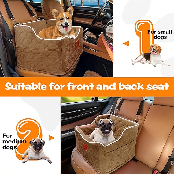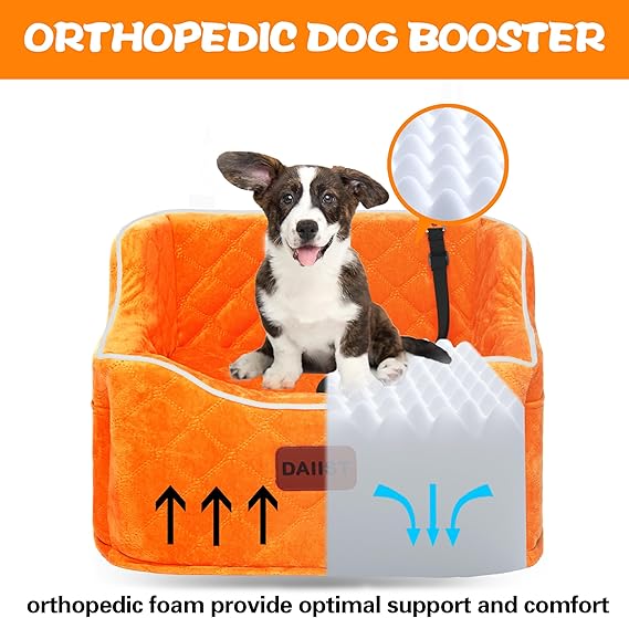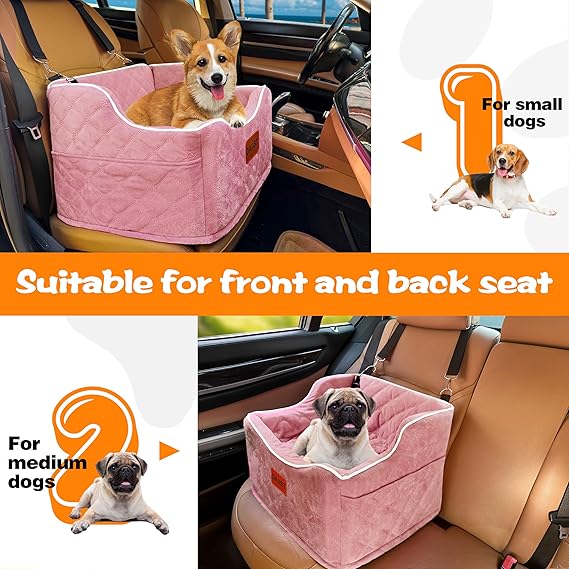 Dog Car Seat for Small Dogs, Memory Foam Dog Booster Seat for Medium Dogs Under 35lbs, Detachable and Washable Elevated Pet Car Seat with Storage Pockets (Rose Red, One Size)