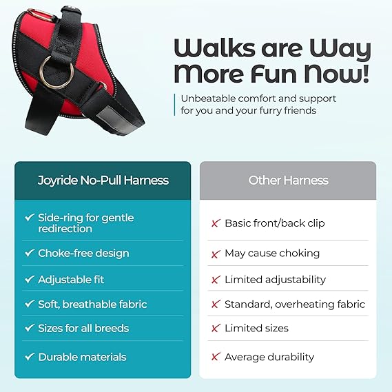 - [Fits All Dog Breeds]: Designed with every dog in mind, the Joyride Harness caters to your dog's comfort and control needs, regardless of their size. From the lightweight small dog harness to the robust harness for large dogs, this durable pet vest is the go-to choice for walks, training, or a joyous run in the park. Experience the ease of walking your dog with our versatile harness. Dual adjustable in 2 places for the perfect fit, every time.