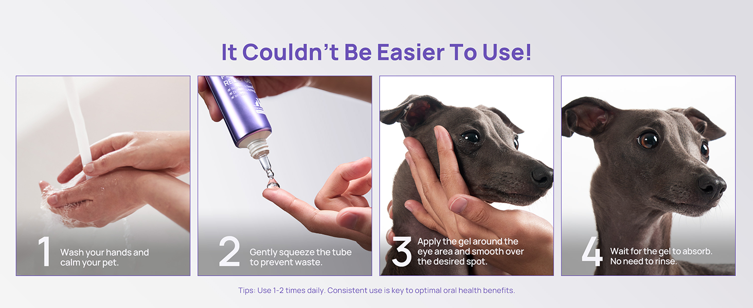 - Easy to Use - Designed with a soft tube and dropper-style tip, this dog eye gel allows for simple, mess-free application. Just a gentle squeeze delivers the right amount around your dog’s eyes—followed by a light massage to comfort the affected area. Easy to use, with no extra waste, and highly cost-effective.