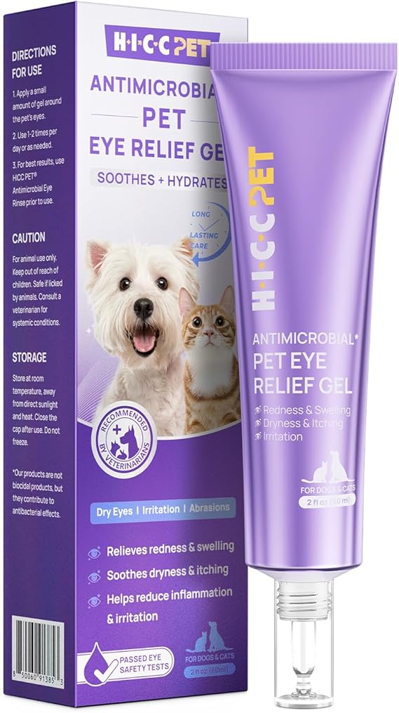 - Must-Have for Daily Pet Care - HICC PET Eye Relief Gel for Dogs can be applied directly into your pet’s eyes safely, helping relieve eye irritation and moisturize dry eyes. Made with safe, natural anti-inflammatory ingredients, it supports dog eye infection treatment, reduces redness and swelling, helps remove tear stains, soothes conjunctivitis (pink eye), minor abrasions, and promotes daily eye hygiene.