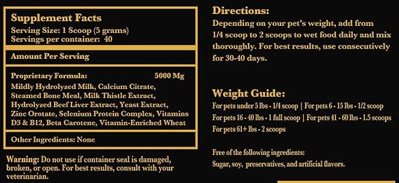 - Healthy Composition - Optimizes your nursing pet with complete nourishment for nursing. These supplements combine calcium, steamed bone meal, milk thistle extract, beef liver extract, zinc, selenium, vitamin complex, and hydrolyzed milk to help maintain nursing dogs' health & weight.