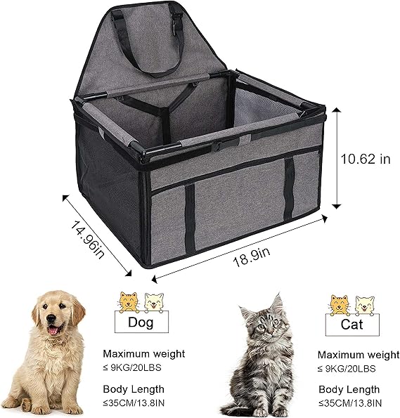 - Size Selection: 18.9"L x 15"W x 10.6"H. The dog car seats is suitable for small to medium dogs up to 20 lbs and suggest to measure your pet body lengths;Idea for the front seat of cars, SUVs, trucks;keeps your pet safe when driving