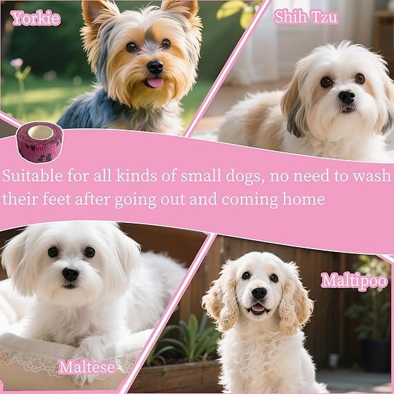 Disposable Puppy Booties Hot Pavement Protectors Adjustable Wrap On Design , Pet Shoes for Small Size Dogs and Cat , Shitzu , Maltese , Yorkie , Pomeranian Essentials , 6 Pack