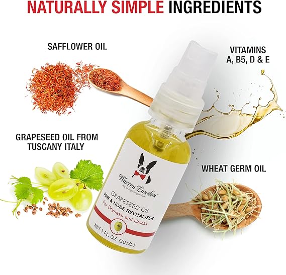 Warren London Nose & Paw Pad Moisturizer for Dogs - Grapeseed Oil & Essential Oil Blend - Instant Relief Revitalizing & Moisturizing Spray for Softer Dog Paws - Made in USA - 1oz