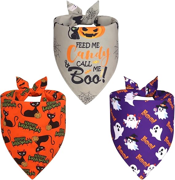 Halloween Dog Bandanas Small 3PCS, 6 Pattern Fall Scarf for Boy and Girl, Triangle Reversible Bibs Breed for Puppy Pets