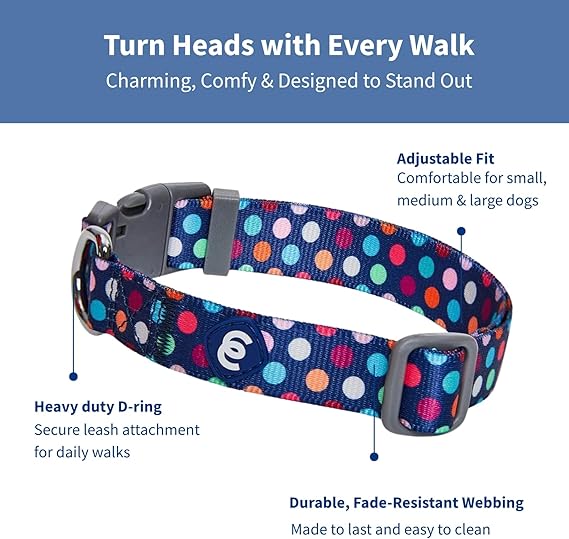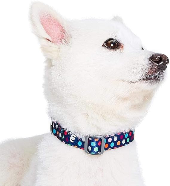 Blueberry Pet Essentials Rainbow Polka Dots Adjustable Dog Collar, Small, Neck 12"-16"