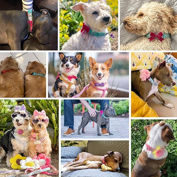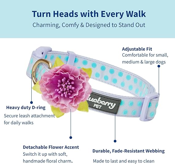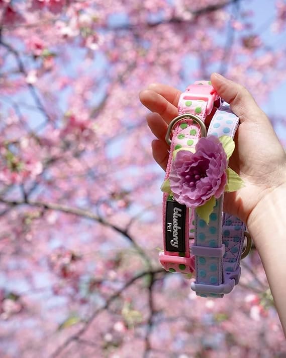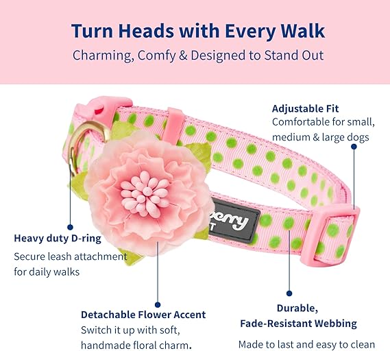 - 【 MATERIAL 】Polyester webbing with flocked polka dots and eco-friendly plastic buckles. A flower accessory is attached to the collar and you can put on/off easily