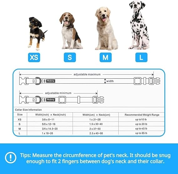 - 【 CARE 】Wipe to clean; Not for tie out; never leave your dog unattended with a collar on. Collar does not stretch; For a secure and comfortable fit, leave only 2 fingers between collar and dog neck
