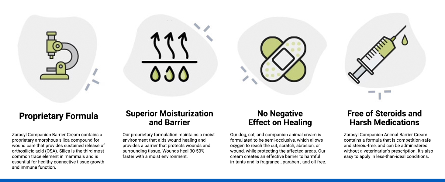 - Zarasyl Companion Barrier Cream contains a proprietary amorphous silica compound for wound care