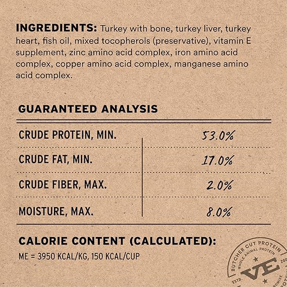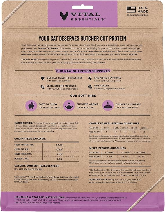 Vital Essentials Freeze-Dried Raw Turkey Meal or Mixer Cat Food Soft Nibs | 99% Turkey, Organs & Bone | 12 oz