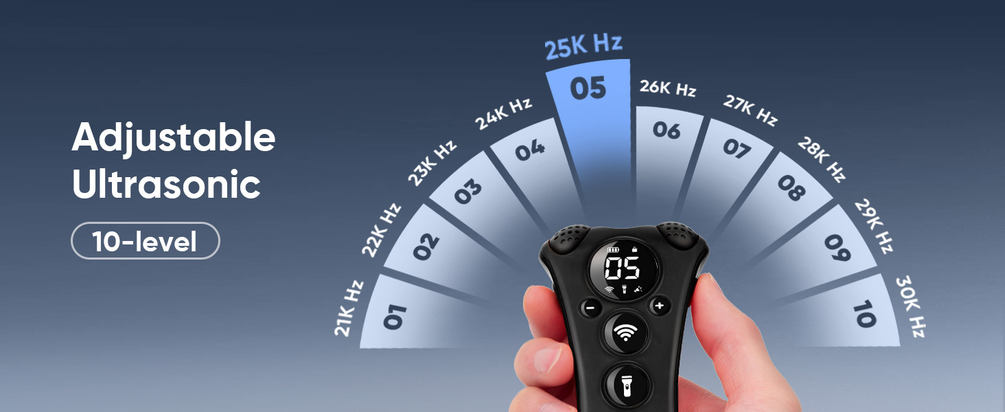 - ️ World's First Adjustable Ultrasonic Dog Trainer - PawBehave sets a new standard in pet training with 10 customizable ultrasonic frequency levels (20KHz-30KHz) to match different dog breeds and behavior types.