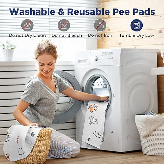 - 【Reusable & Washable Pee Pads】Puppy pads Guaranteed reusable up to 300+ times! Dog pads can be cleaned quickly and effectively by simply throwing them in the washing machine, drying them in the dryer on low heat, or hanging them dry. Pet training pads aren't easy to deform and are use, which can reduce waste and save money. Please don't use fabric softener, bleach, or dry clean these puppy pads.