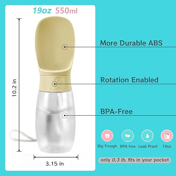 - 【SAFE AND DURABLE MATERIALS】This portable dog water bottle is made of high quality food-grade plastic.Durable and recyclable, easy dismantling and cleaning. It will keep your pet health and vitality. Enjoy the safe and funny outdoor act with your pet.