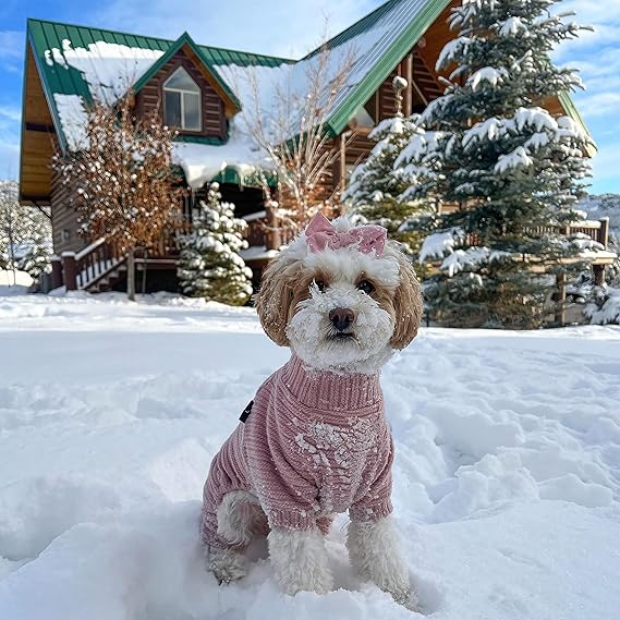 - Classic round turtleneck without rubbing the neck. Give your little baby the best comfort. Help your pet enjoy running and jumping without burthen in the cold weather days when wearing this sweater.