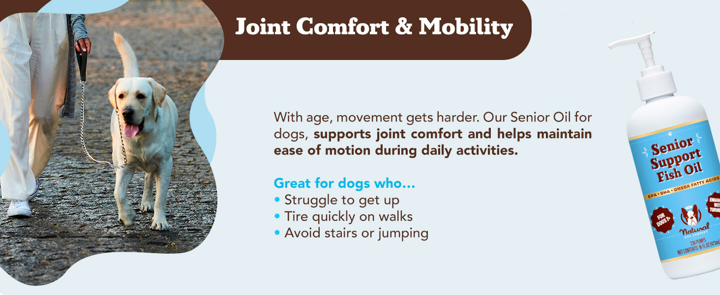 Natural Dog Company Omega 3 Fish Oil for Senior Dogs Supplement - Support Mobility, Skin, Coat, Heart & Brain, with Turmeric, Salmon & Fish Oil for Aging Dogs, Liquid Canine Supplement, 16oz