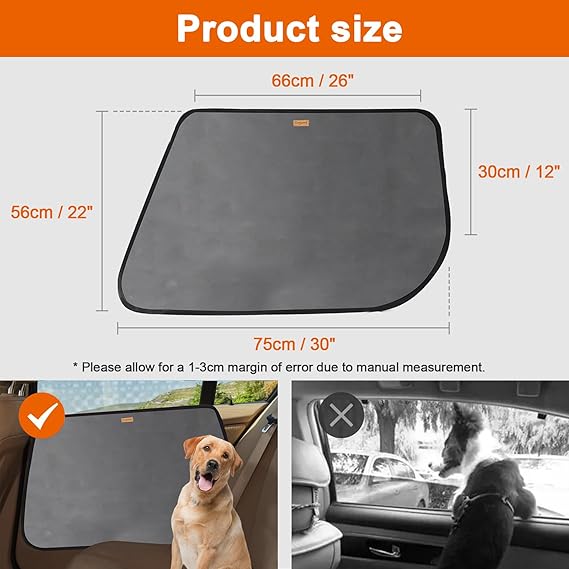 - [2 PACK & VEHICLE UNIVERSAL]: The 2pcs interior car door protector from dog scratching is 26'' W X 22'' H, one for the left side door and the other for the right side door. Universal size fits most cars, trucks, SUVs, etc.